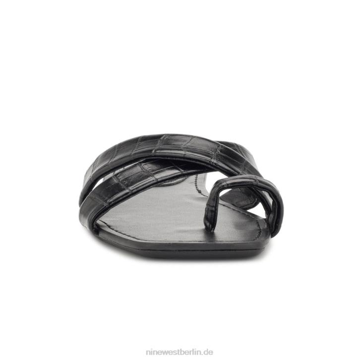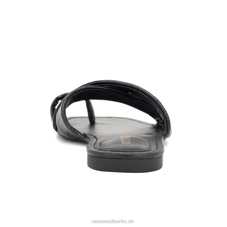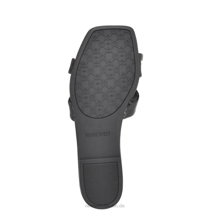 Nine West RR2J1075Gepunktete flache Slide-Sandalen schwarzes Krokoprägung